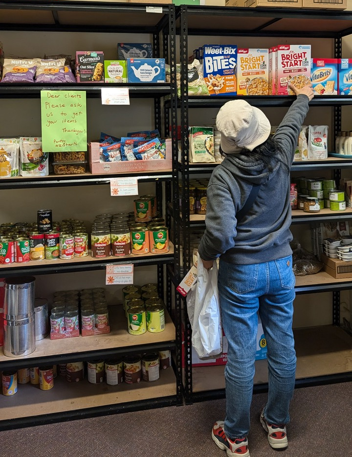 Food is delivered through weekly fresh produce market parcels, pantry items, and prepared meals.