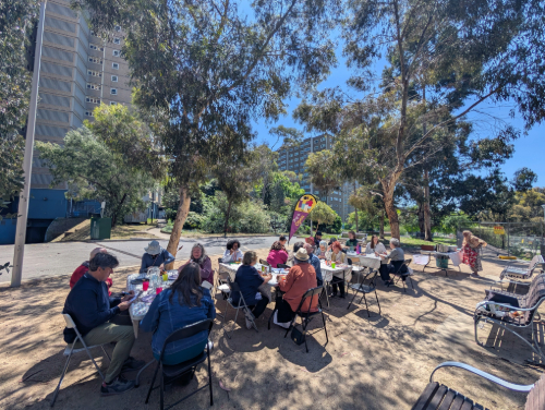 Our programs change to meet the needs of the community. Currently we provide emergency relief through a community food pantry and free community fresh food market program, various well-being programs, longer term learning programs that support children and their families with schoolwork, community meals and a drop-in centre.
